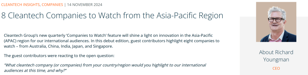 AC Biode is honored to announce its selection as one of the standout companies in Cleantech Group’s debut quarterly ‘Companies to Watch’ feature. This prestigious recognition shines a light on innovative companies in the Asia-Pacific region, showcasing their contributions to the global sustainability movement. Thank you Richard Youngman (CEO of Cleantech Group) for making this happen.